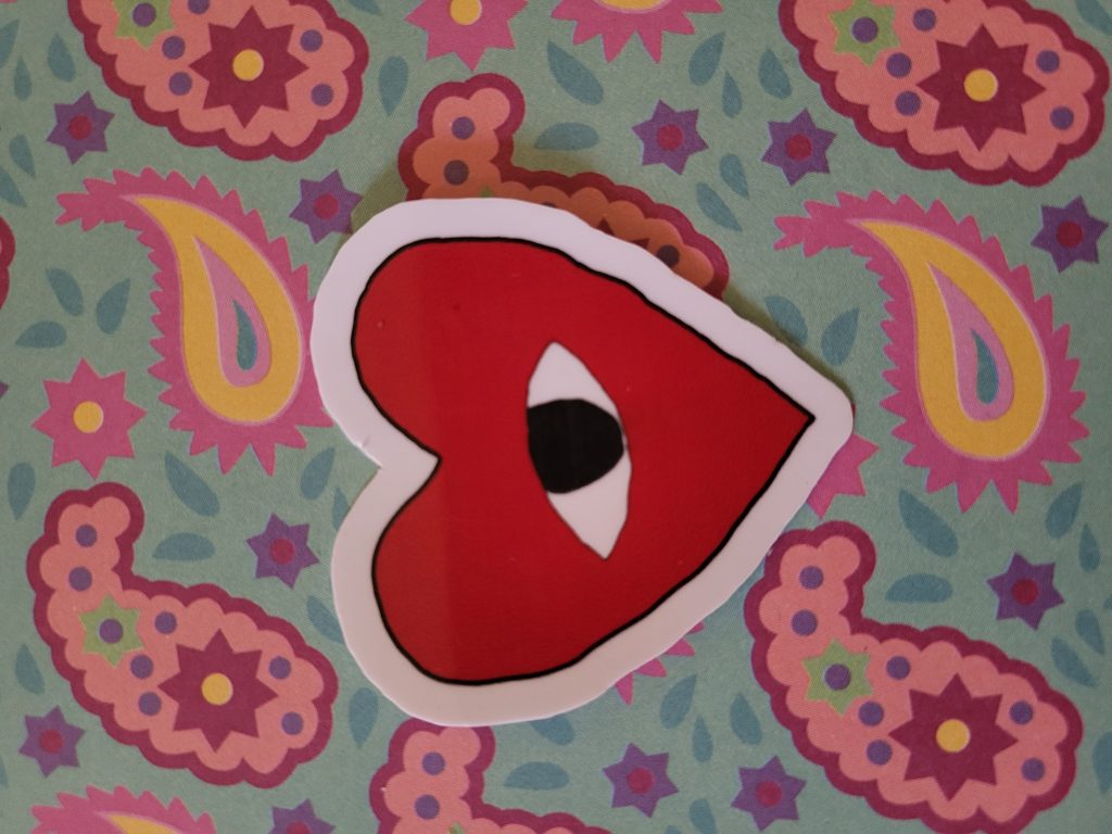 Sticker in the shape of a heart with an eye in the middle