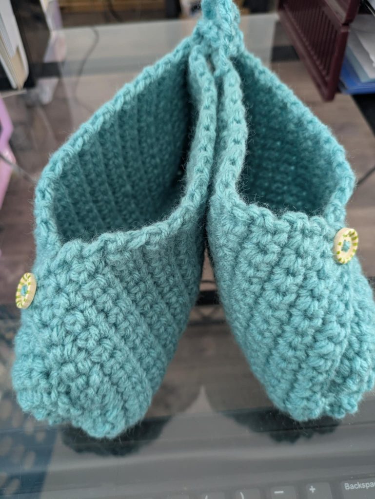 Crochet slipper in teal