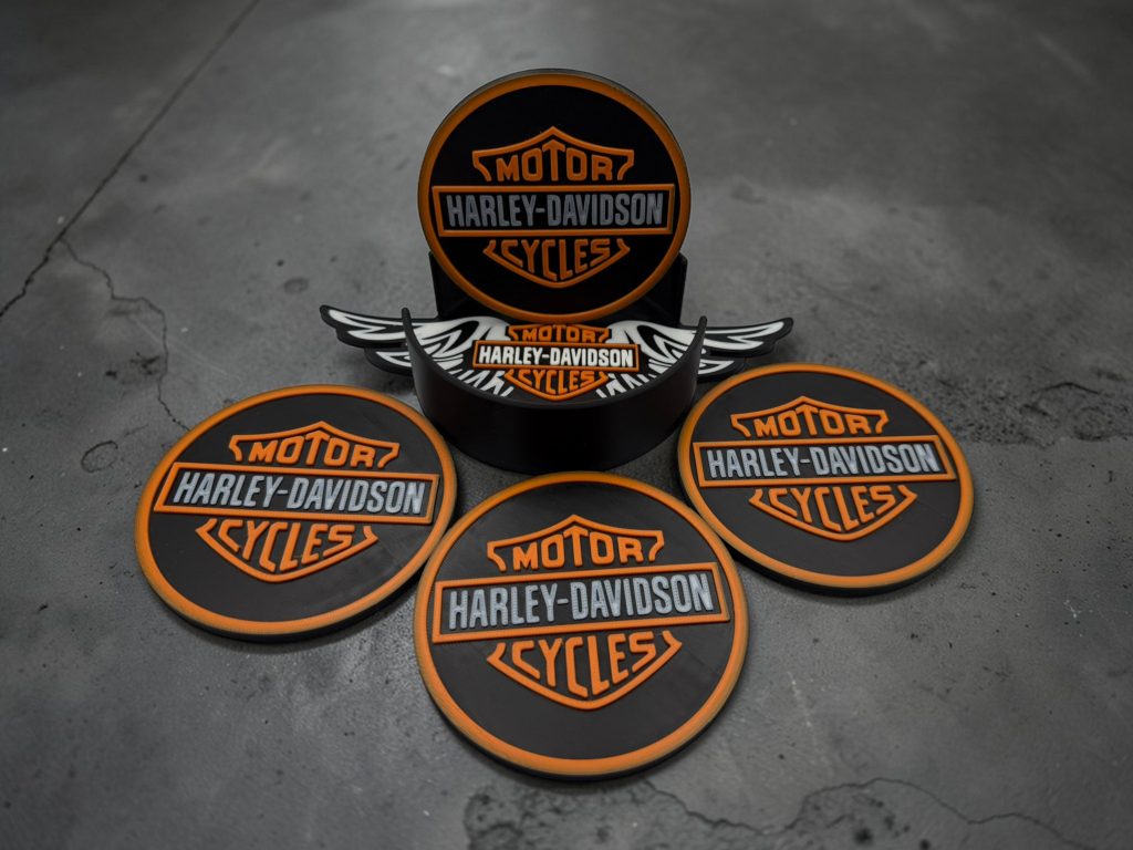 Add a bold biker vibe to your space with this motorcycle-inspired 3D printed coaster set, designed for fans of classic cruiser style and garage culture. Inspired by the iconic look associated with Harley-Davidson, this set delivers rugged style and everyday functionality.