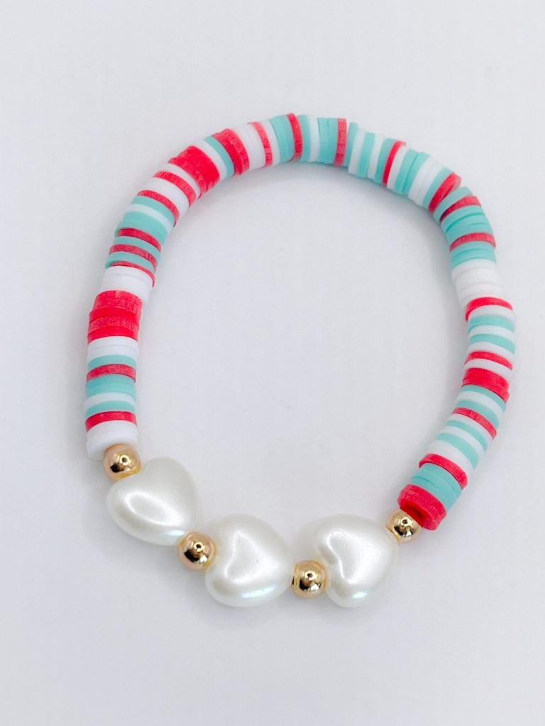 The stackable bracelets slip on easily and comfortably, while the earrings feature matching beads on stainless steel hooks with clear silicone backs.