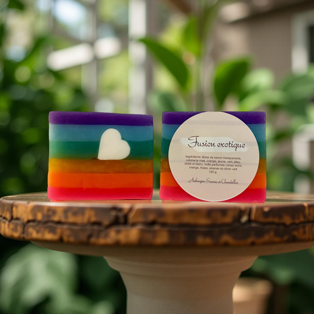 Happy Pride! Celebrate pride with this fun rainbow-coloured, pina colada smelling soap with a cute little pineapple on top. This soap contains lots of rich, moisturizing butters along with the gentlest exfoliation from kaolin clay. A portion of each purchase is donated to an organization in the LGBTQ community in Toronto. Each soap is handcrafted in small batches, therefore appearances may vary slightly.