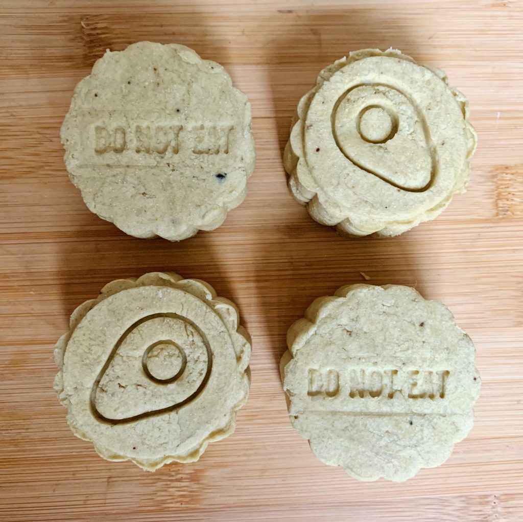 The best feeling ever is a fresh clean coat with non toxic and non smelly ingredients for your four-legged best friend(s). It is SO much easier giving your dogs (and cats if they’ll let you) a bath with a bar instead of liquid going everywhere ESPECIALLY when trying to scrub their tummies. Not to mention, lots of commercially made shampoos are made with super strong fragrances which dogs and cats absolutely HATE and are terrible for their skin.