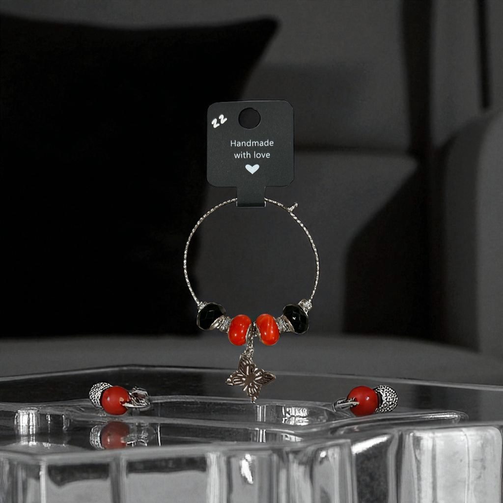 ONE OF A KIND HANDMADE BRACELETS MADE WITH STRECH THREAD, RED AND BLACK VEIN SEMI-PRECIOUS STONES AND WHITE LAVA BEADS. THESE PIECES CAN BE WORN CASUALLY OR ON A SPECIAL NIGHT OUT.