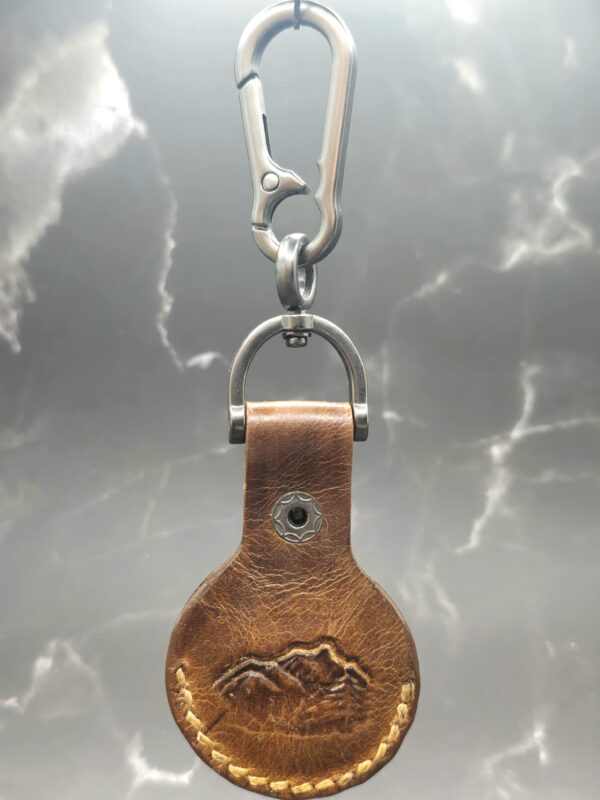 Brown Apple Air Tag Holder with Mountain Scene Handcrafted from Premium Quality Veg-Tanned Leather