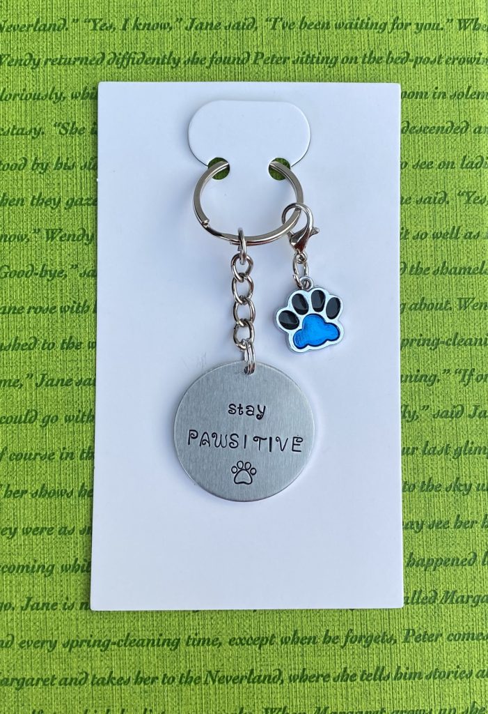 ‘stay pawsitive’ hand stamped keychain
