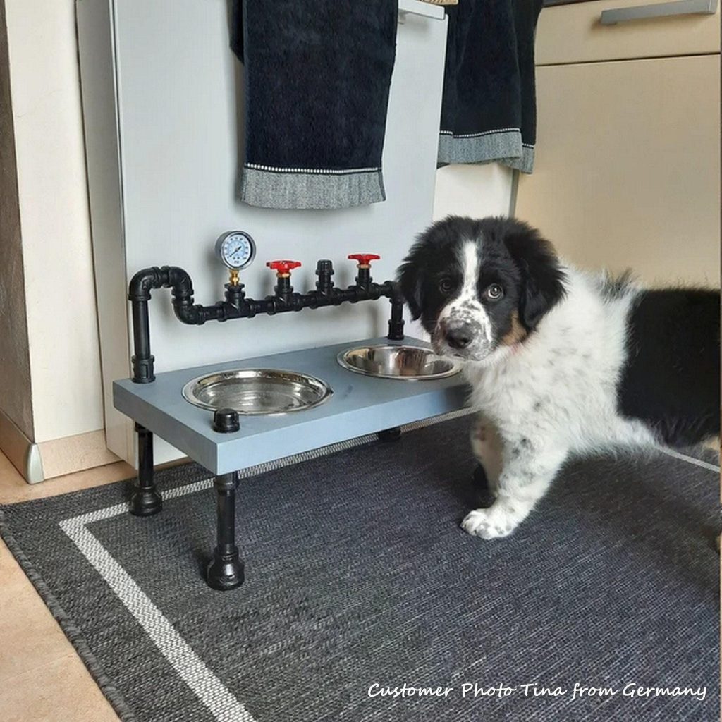 Steampunk Raised Dog Bowl Feeder: Industrial Style
