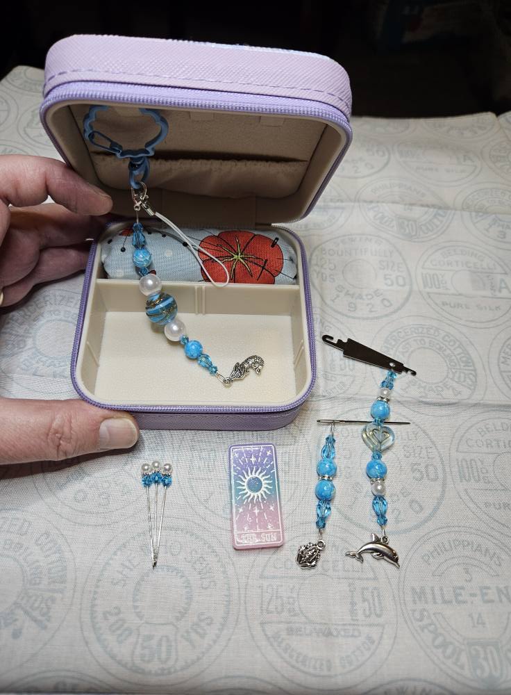 Embroidery Box – Blue & Mauve Sealife